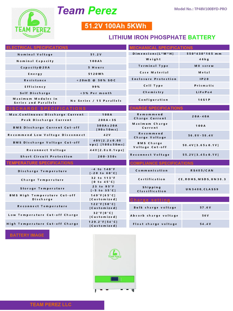 100Ah 51.2V LifePO4 Battery Power Wall with Active Balancer - Wall Mount Version